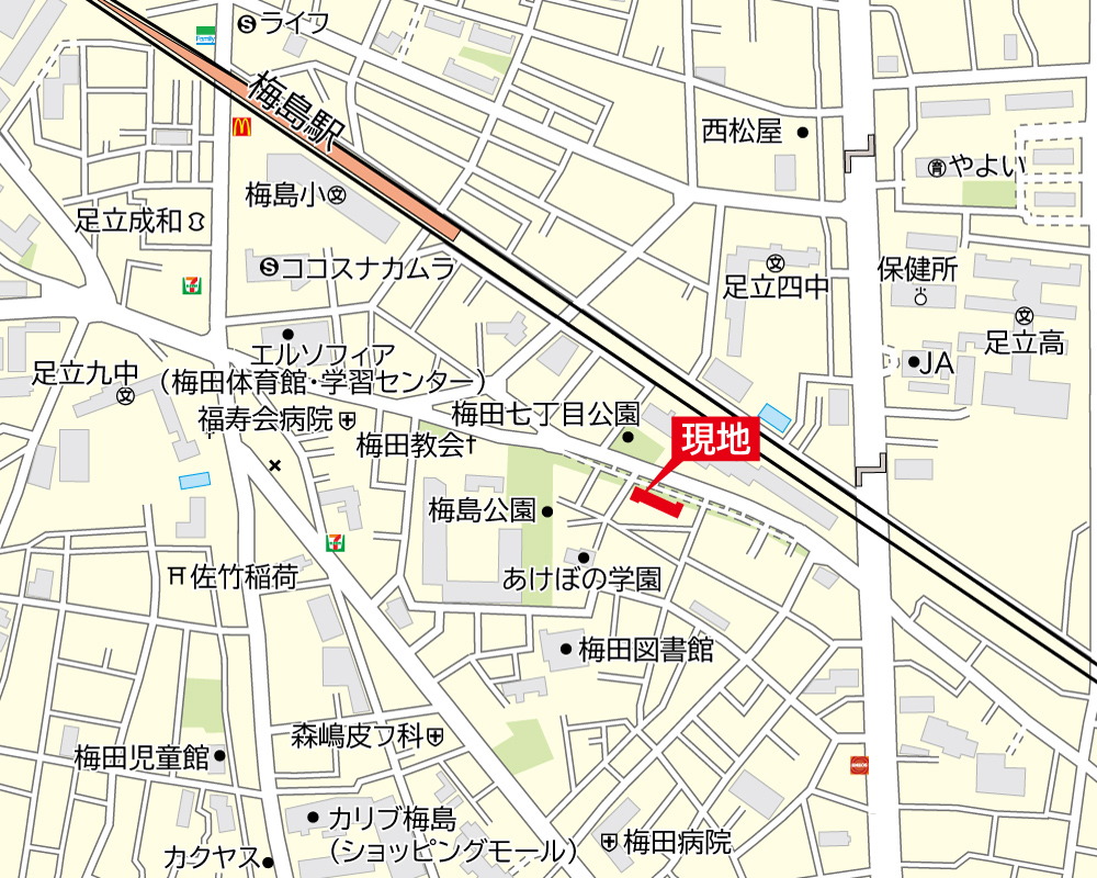 最寄駅 | 東武伊勢崎線 「梅島」駅 徒歩7分 「五反野」駅 徒歩11分 |